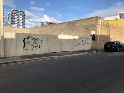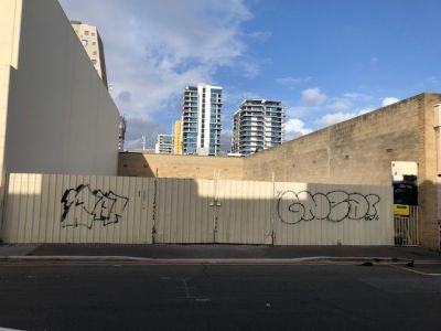Vacant, level and fenced car park or storage yard.